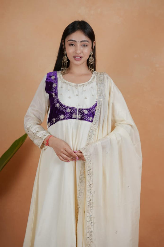 **Ivory Blossom Grace Anarkali Suit** ✨🌸(RRRD34)