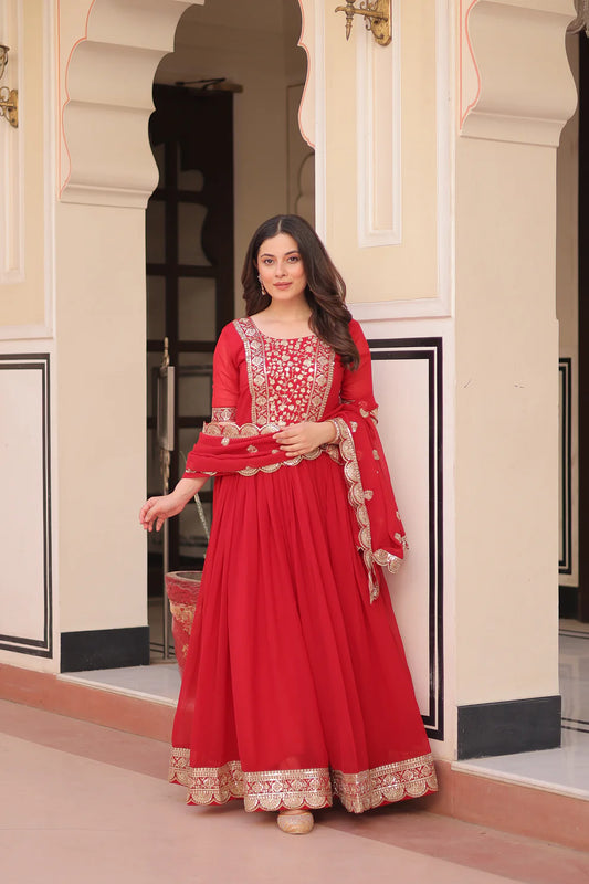 FESTIVE SPECIAL FAUX BLOOMING EMBROIDERED GOWN WITH DUPATTA(WD179)