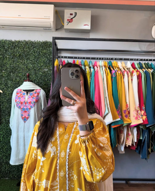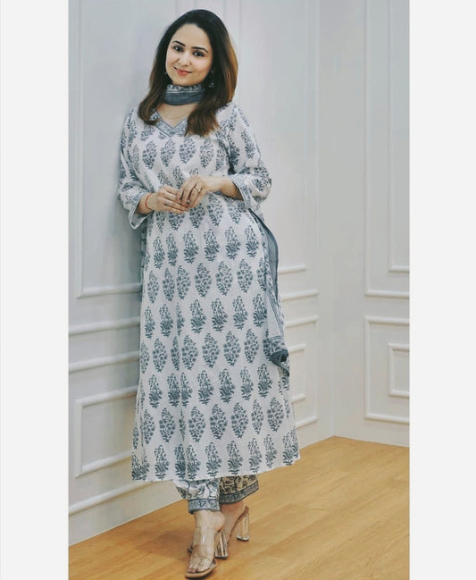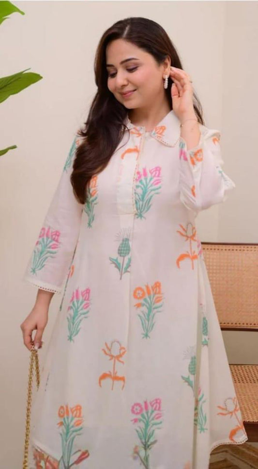 Floral motif printed cotton kurta with pocket one side of the kurta and pleated salwar and soft cotton malmal dupatta💃💃 (SWRD09)