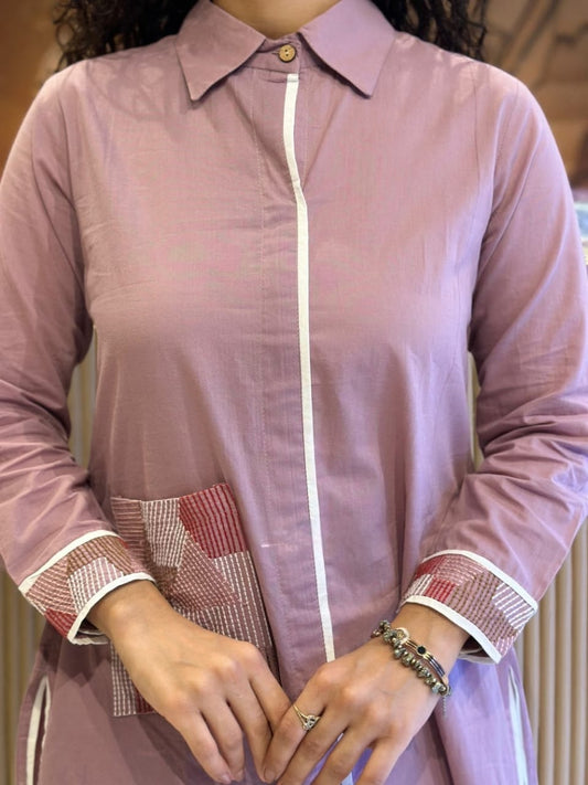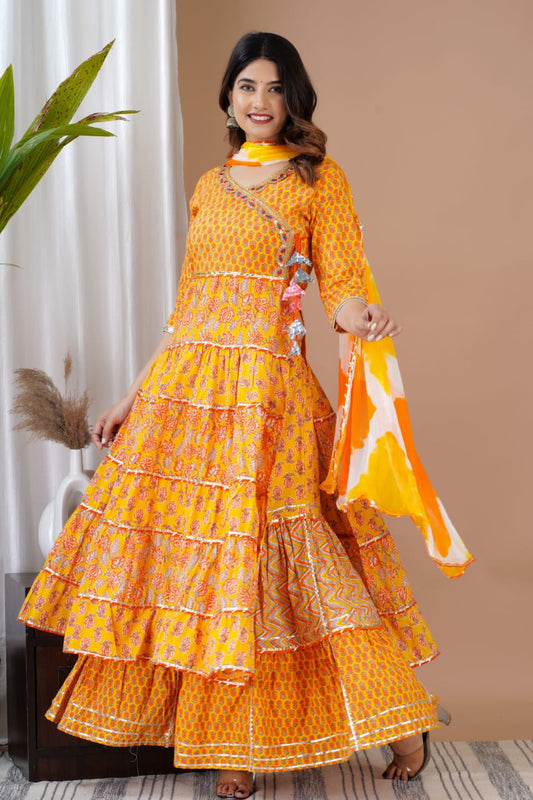 Floral hand block printed angrakha a line kurta with smart slit in front with three smart wooden show buttons(SWRD19)