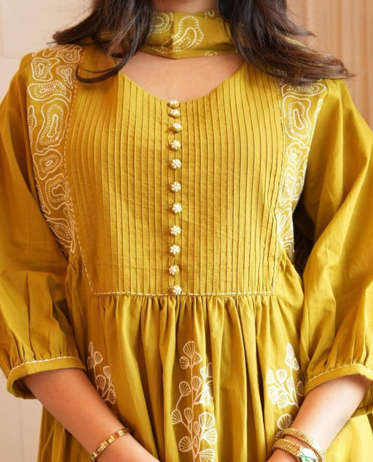 JAAL HAND BLOCK PRINT COTTON SUIT SET WITH CHIFFON DUPATTA(WACFCOTMU04)