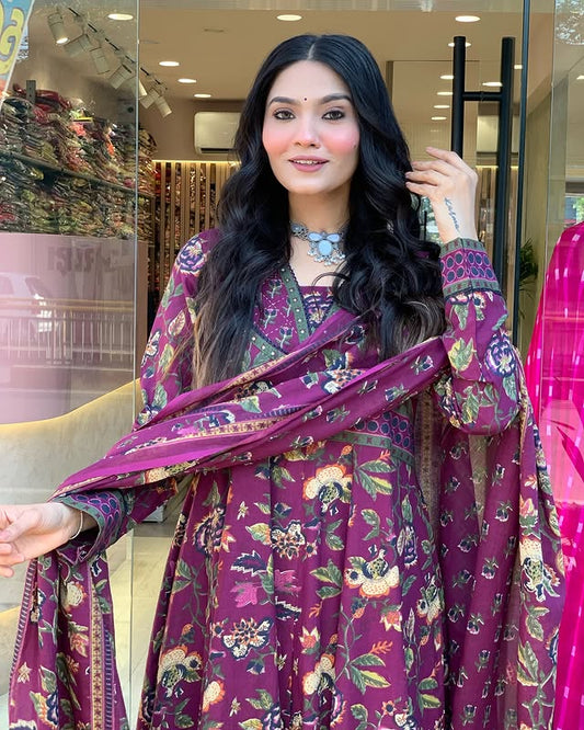 Look straight out of a dreamy movie set as ;you turn around and walk in this elegant flaired suit ! The perfect of traditional wear