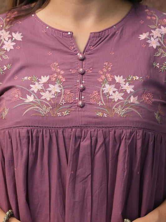 Launching Summer Special, Comfortable And Attractive Pure Cotton Suit Set Which Is Beautifully Decorated With Hand Embroidery And Thread Work. It Is Paired With Matching Pants