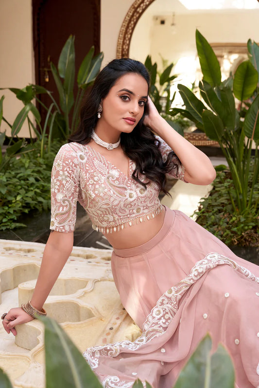 ORGANZA EMBROIDERED LEHENGA CHOLI WITH DUPATTA(WD84)