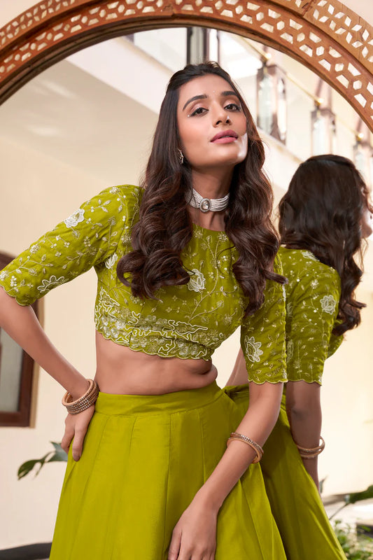 ORGANZA PLAIN LEHENGA WITH EMBROIDERED CHOLI WITH DUPATTA(WD67)