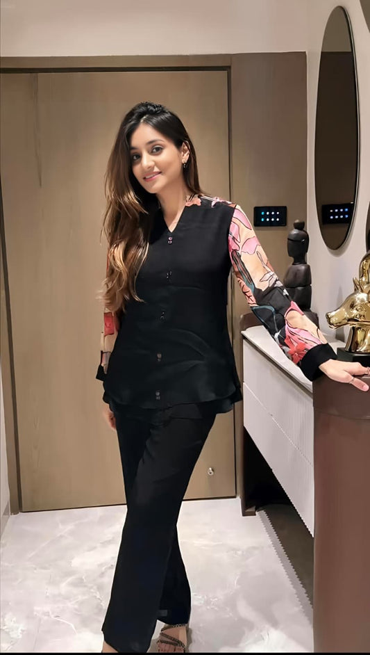 New to our smart premium woven cotton co-ord set with Beautiful Fox Georgette sleeves that's perfect for work to vacation (RD027)