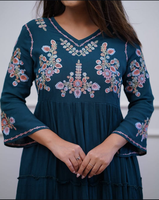 .Upgrade your office wear wardrobe with this classy kurti embroidery work detailing with (WACD17)