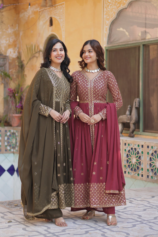 Desirable Women's Fully Flair Gown Made With Star Georgette Fabrics and Designer Embroidered Dupatta ππ»