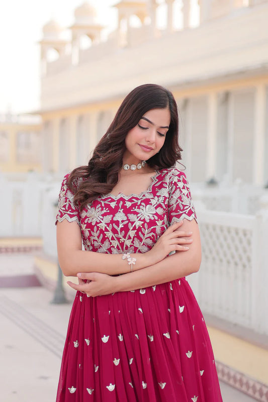 Womensavtar Faux Georgette with Embroidery Zari Sequins-work premium gown