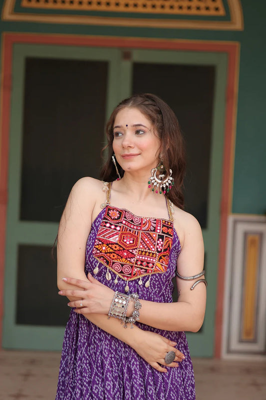 WOMENSAVTAR NAVRATRI SPECIAL BANDHNI PRINT WITH KUTCHI PATCHWORK GOWN