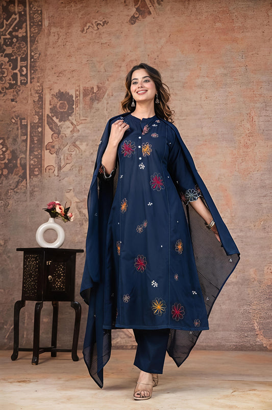 Beautifull straight petan set with beautiful pech work and hand katha work on all over kurti (SWSK11)