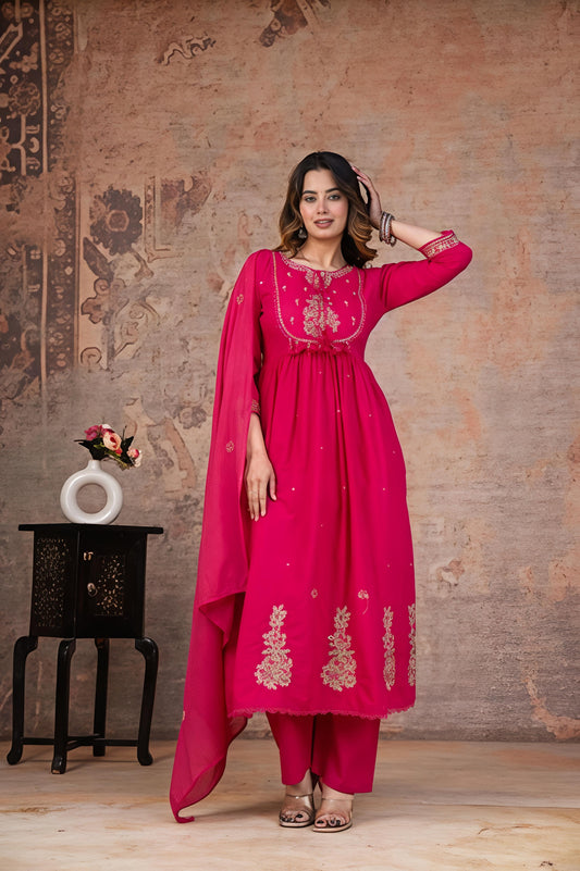 Pink Embroidered Kurta Set with Dupatta (SWDH01)