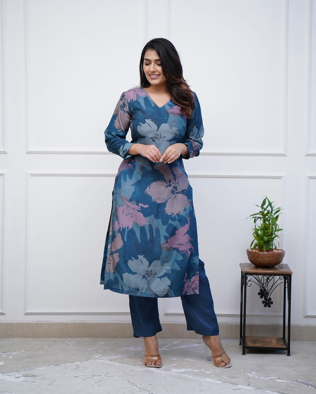 💃Enjoy New Floral Kurta Pant set with amazing lace Work ❤️