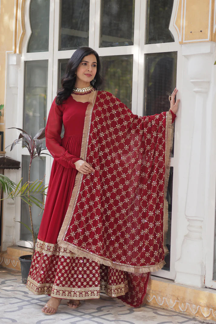 BLOOMING GEROGETTE SEQUANCE EMBROIDERY GOWN WITH DUPATTA(WD99)