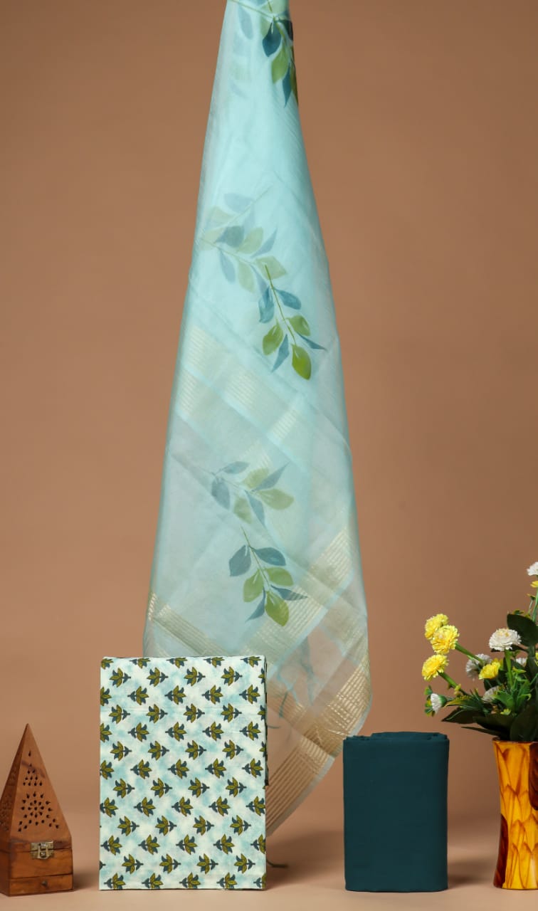 BLOCK PRINT COTTON SUIT SET WITH ORGANZA DUPATTA (SWORG28)