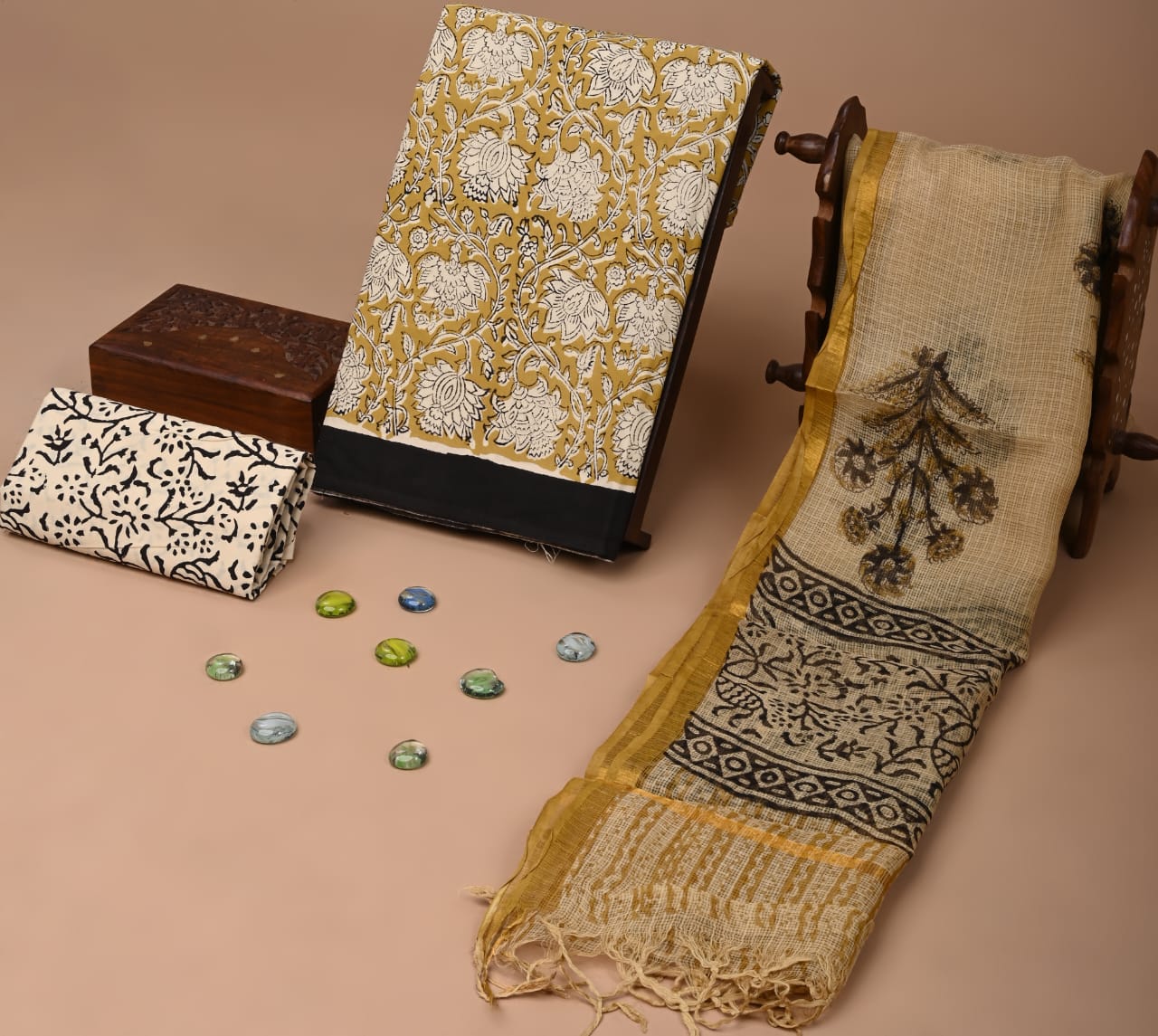 Suits Wala Hand Block Print Cotton Suit Set with Kota Doria Dupatta