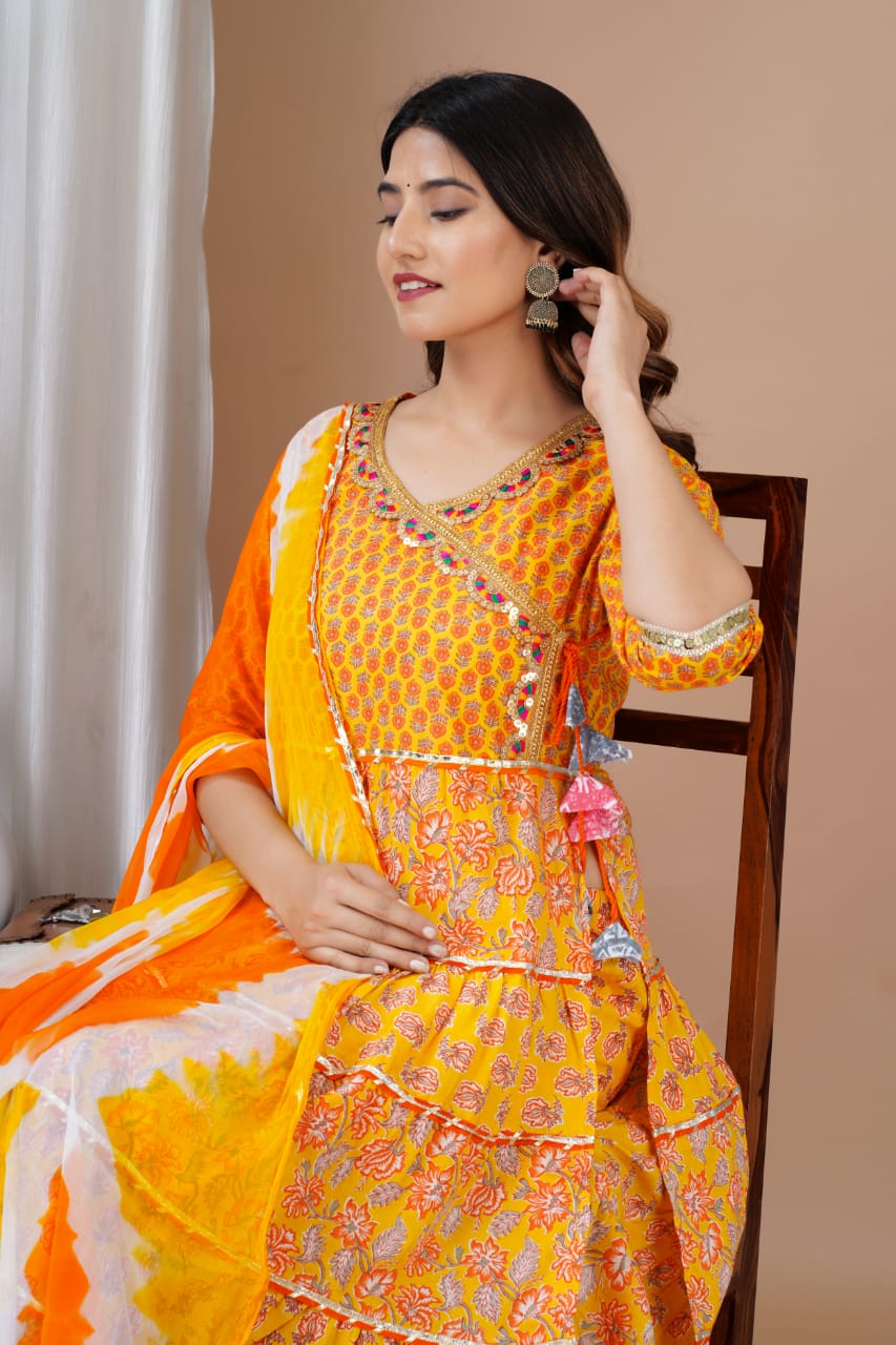 Beautiful mirror work las with gotta las and side tussle also in kurti