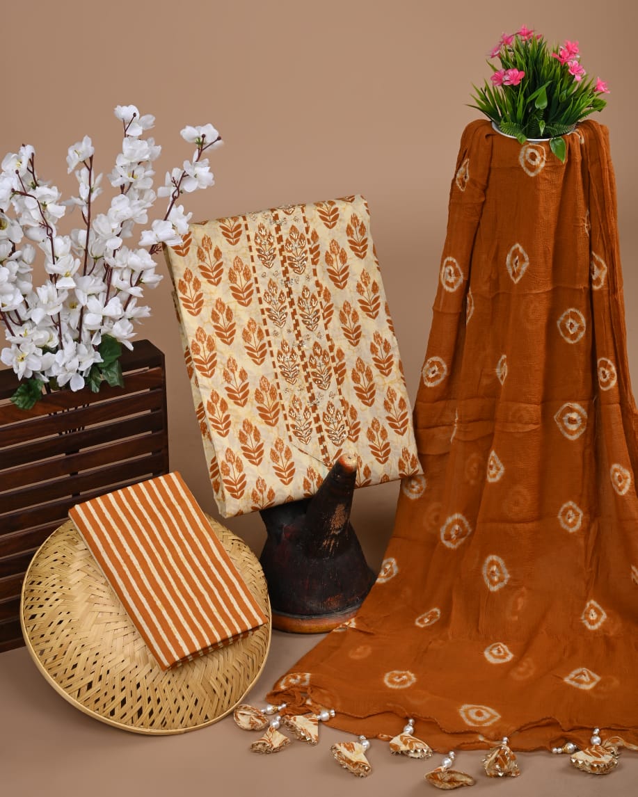 Pair this beautiful cotton fabric with a matching duppata and you're set to take on the day.