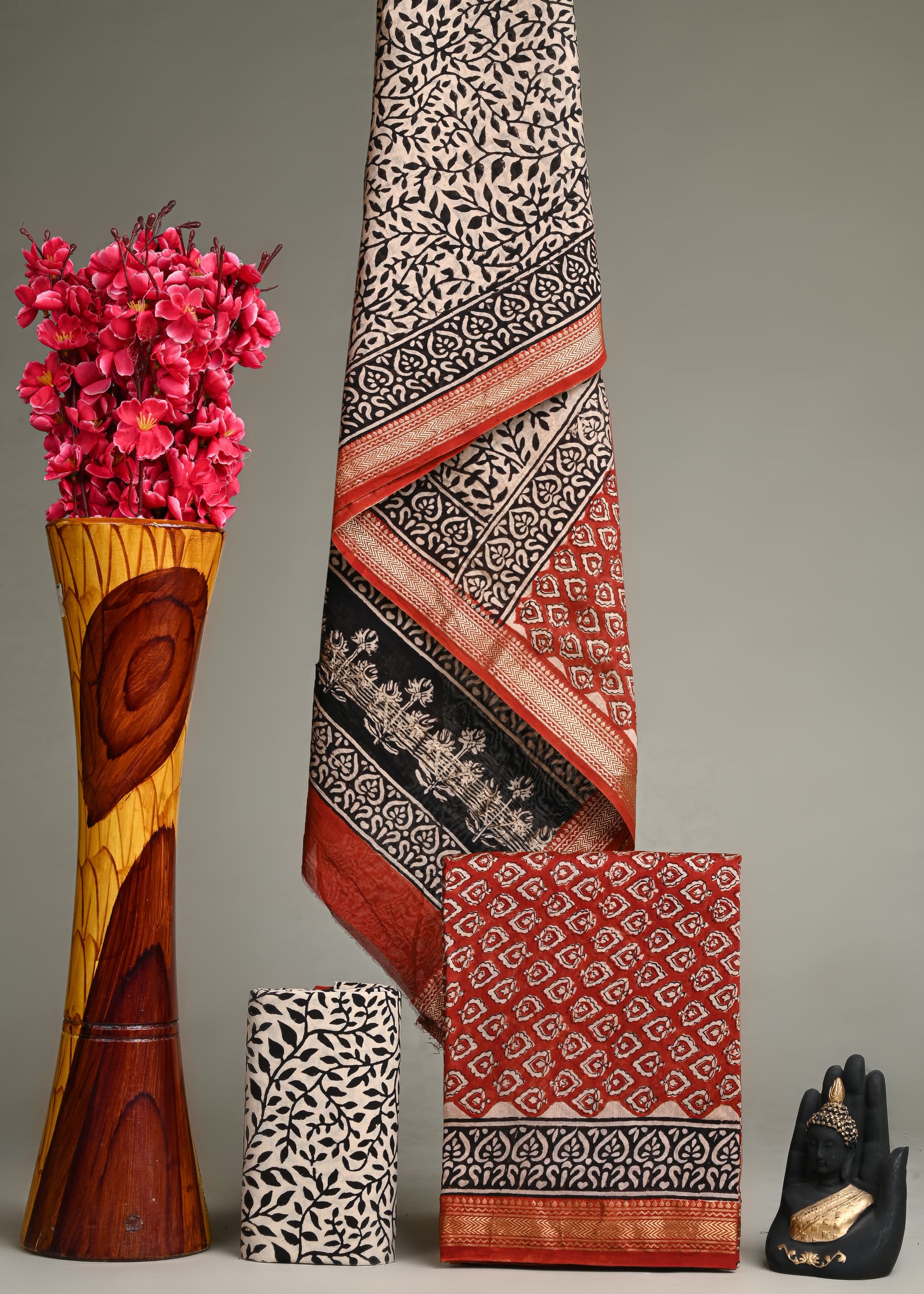 Hand block printing is a centuries-old Indian art form that uses a hand-carved teak wood block to print garments. These garments are purely a work of artisans and unsymmetric in nature. This catalog is inspired from traditional motifs of flowers.