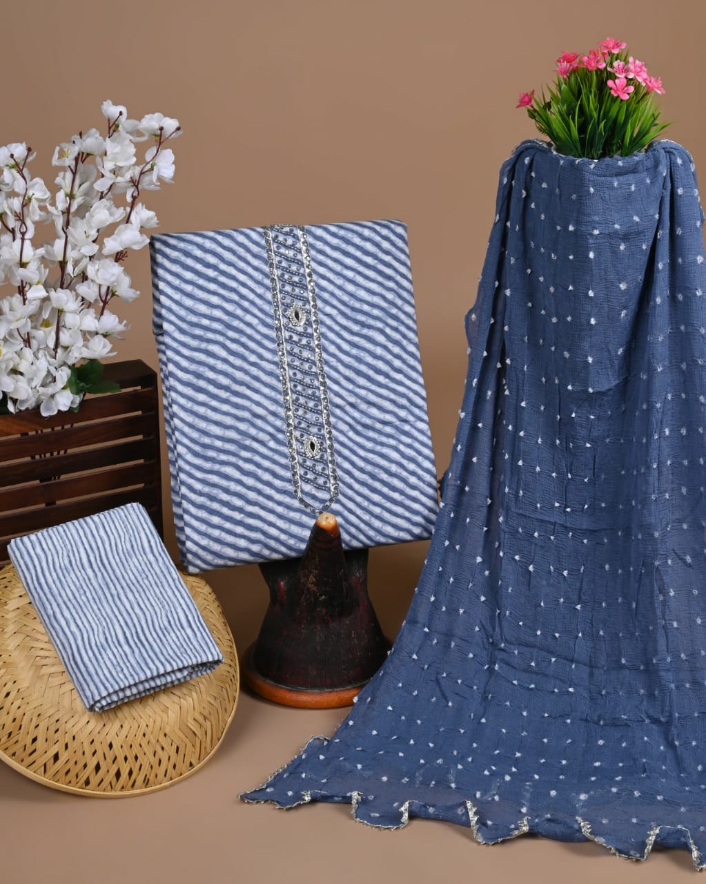 Pair this beautiful cotton fabric with a matching duppata and you're set to take on the day.