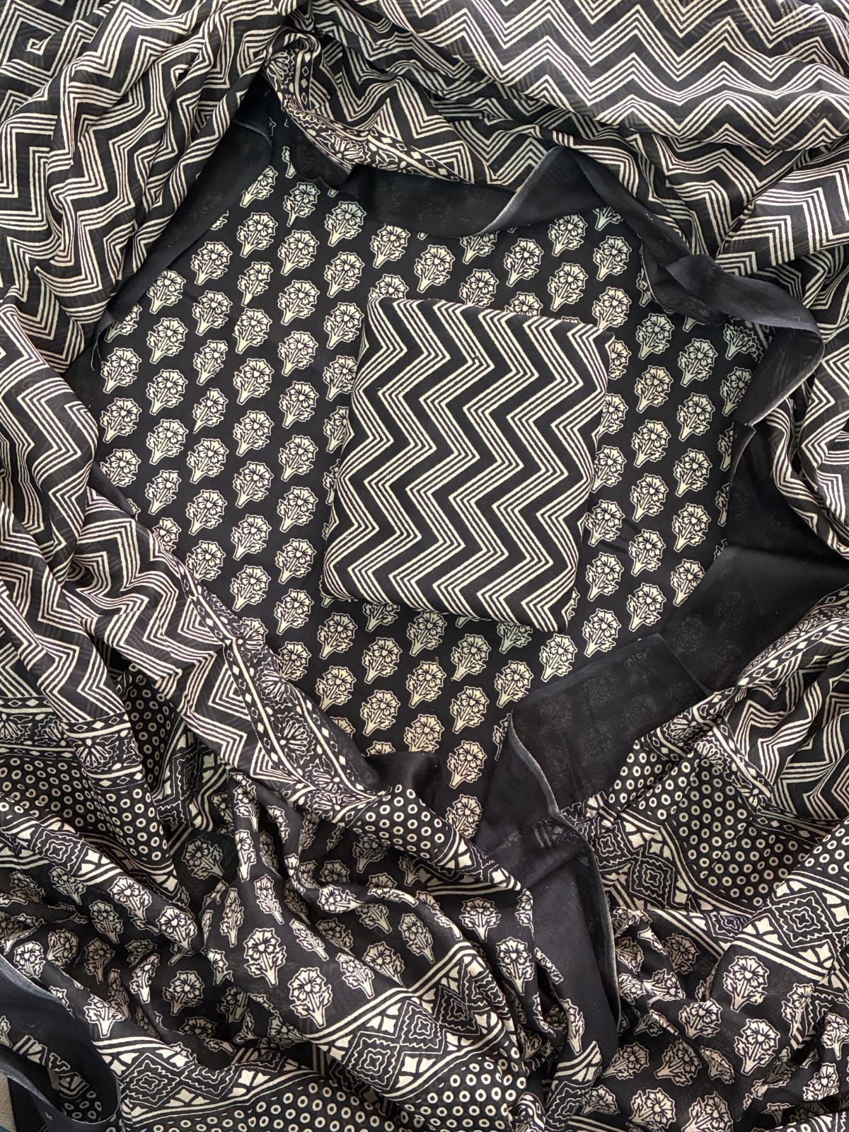 ELEGANT HAND BLOCK PRINT COTTON SUIT SET WITH MULMUL DUPATTA(WACOTMU51)