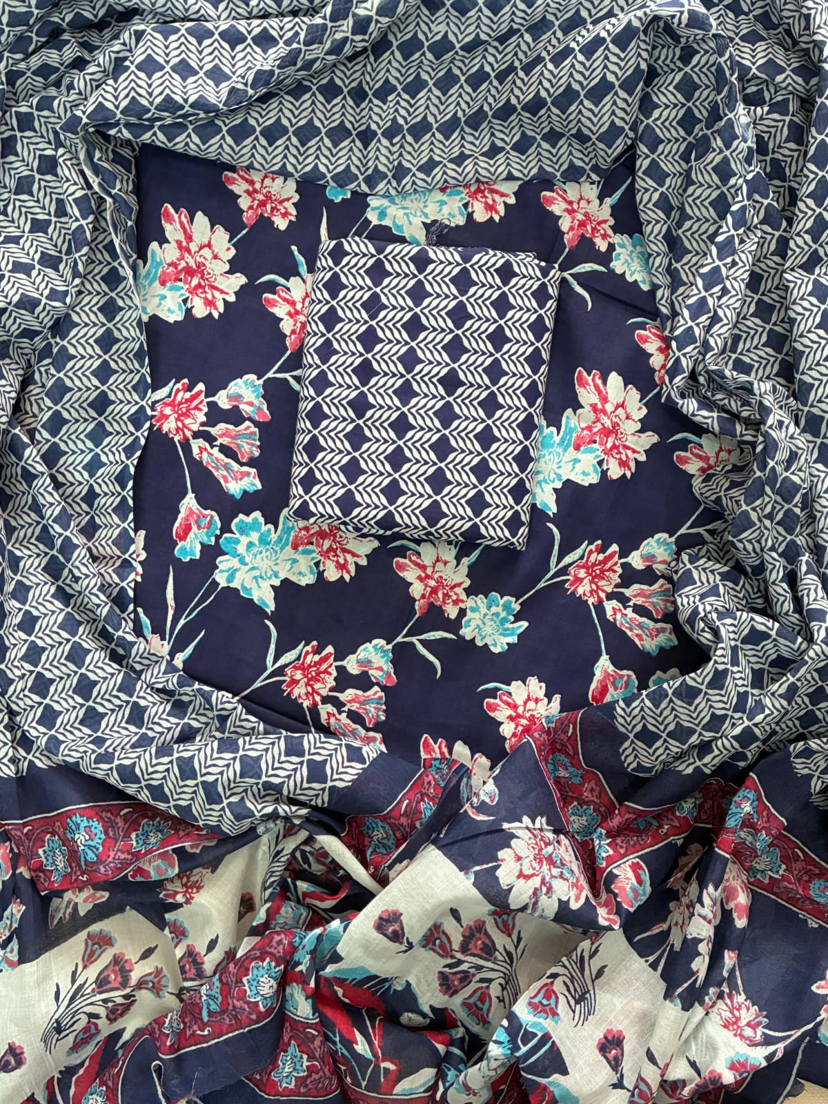 ELEGANT HAND BLOCK PRINT COTTON SUIT SET WITH MULMUL DUPATTA(WACOTMU83)