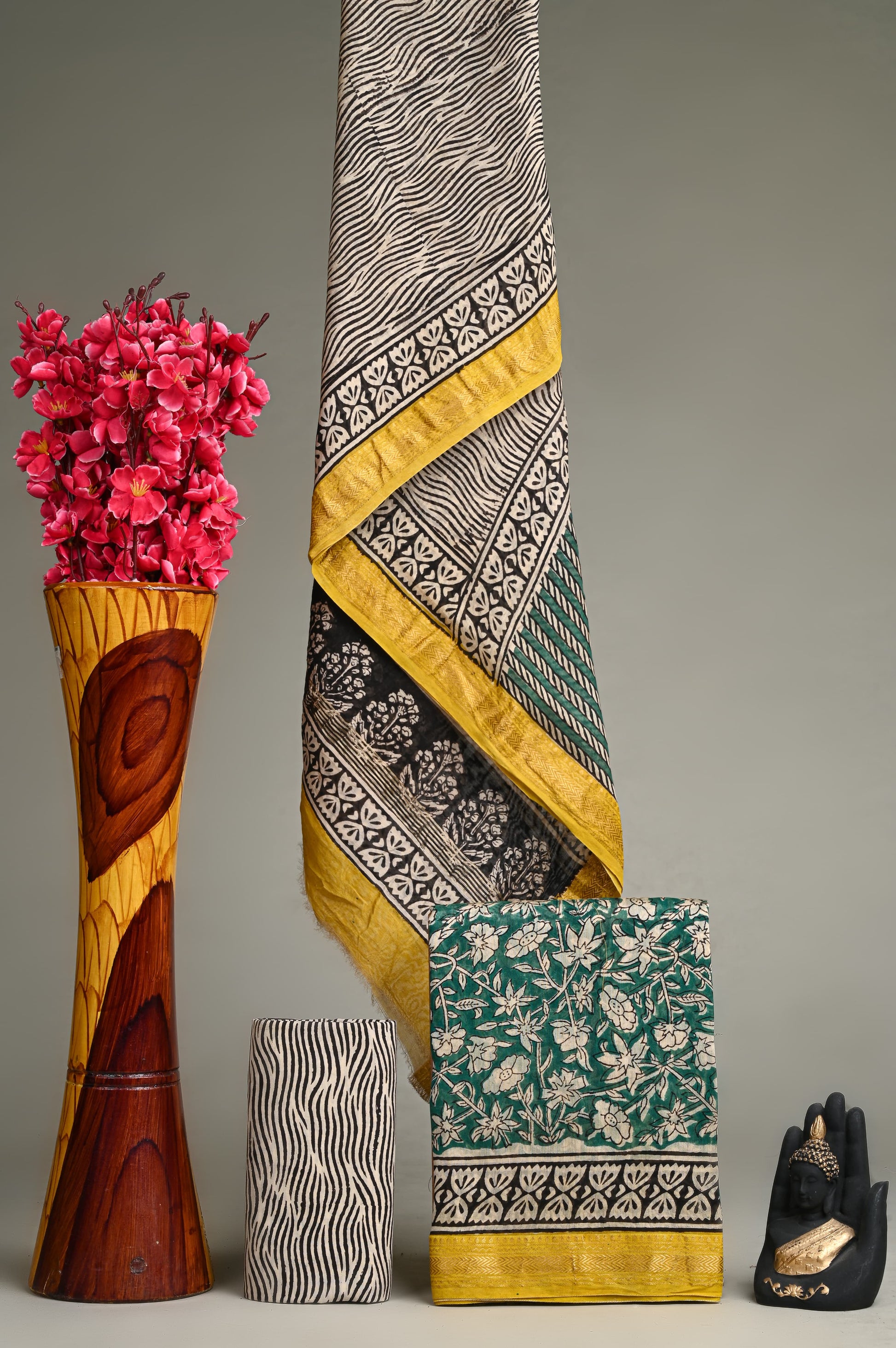 ELEGANT HAND BLOCK PRINT MAHESHWARI SILK SUIT SET 25
