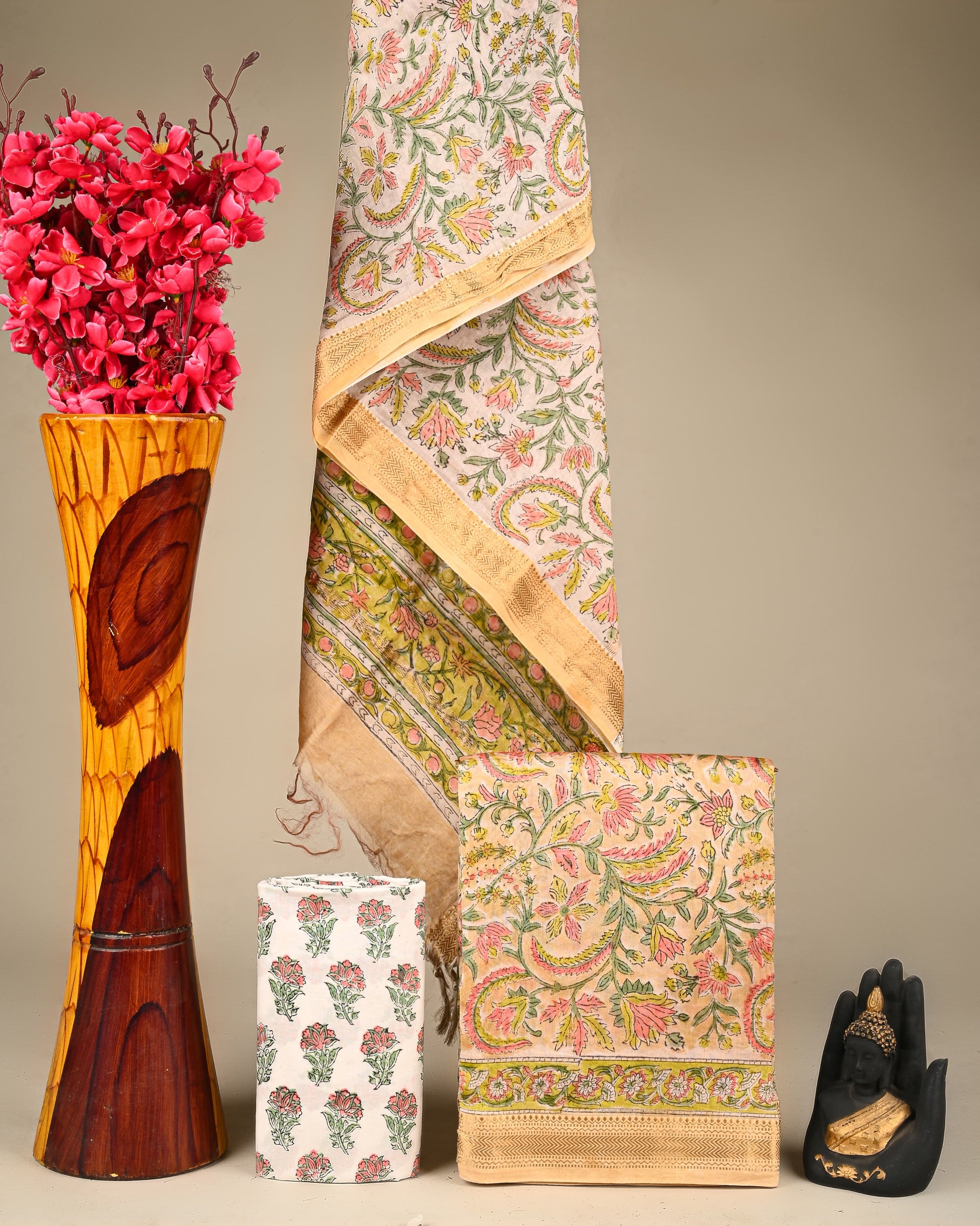 EXCLUSIVE ELEGANT HAND BLOCK PRINT MAHESHWARI SILK SUIT SET 28
