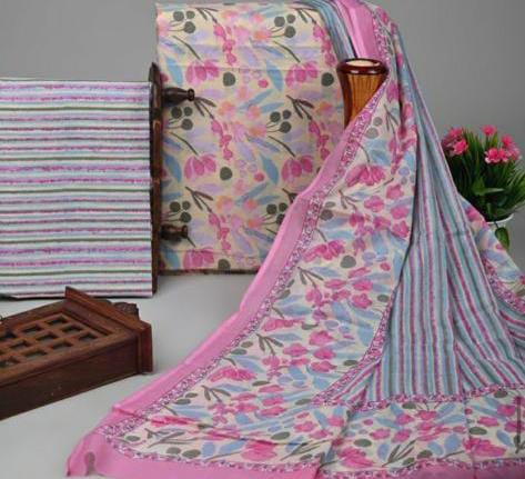 EXCLUSIVE HAND BLOCK PRINT COTTON SUIT SET WITH MULMUL DUPATTA