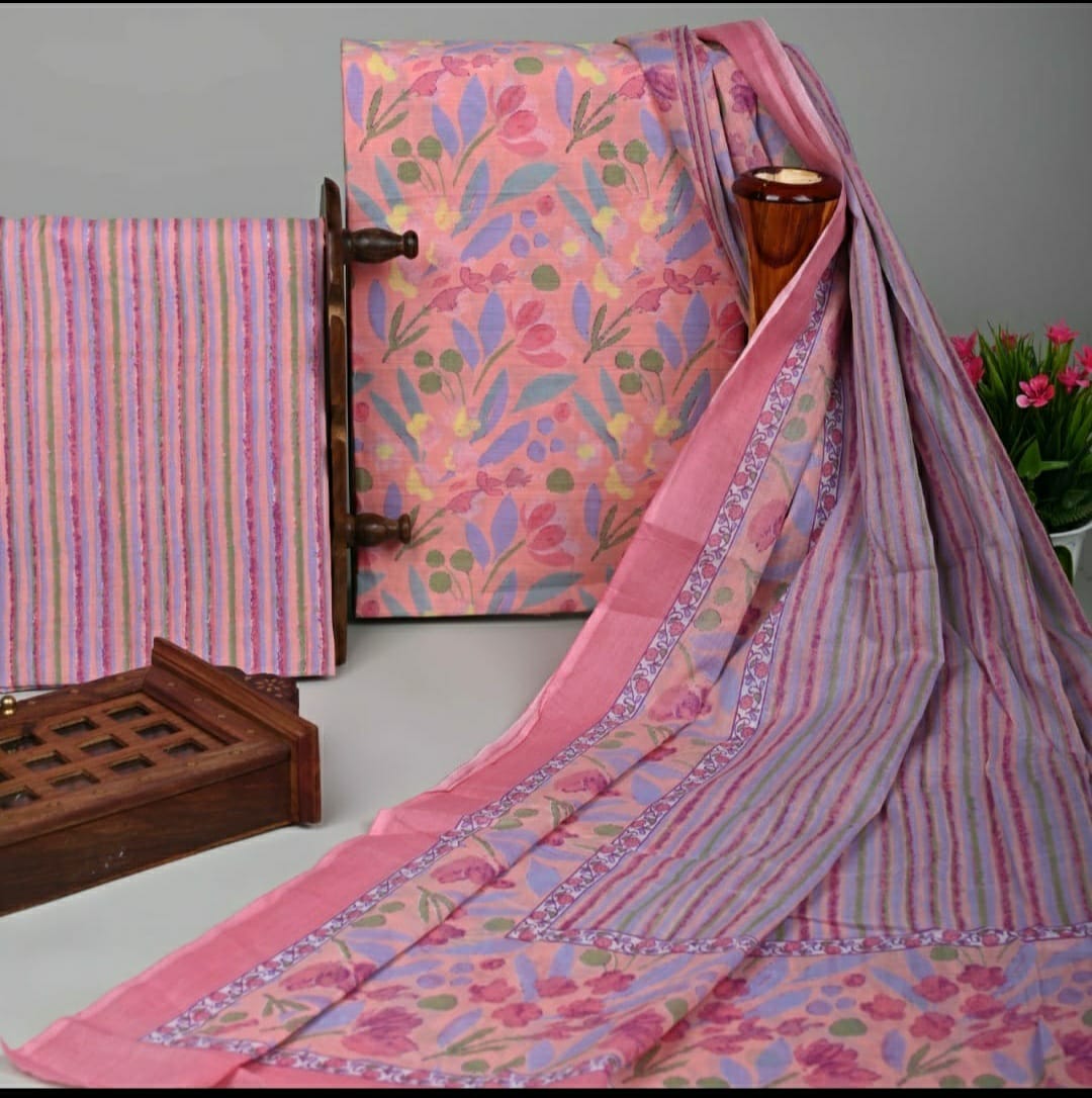 EXCLUSIVE HAND BLOCK PRINT COTTON SUIT SET WITH MULMUL DUPATTA