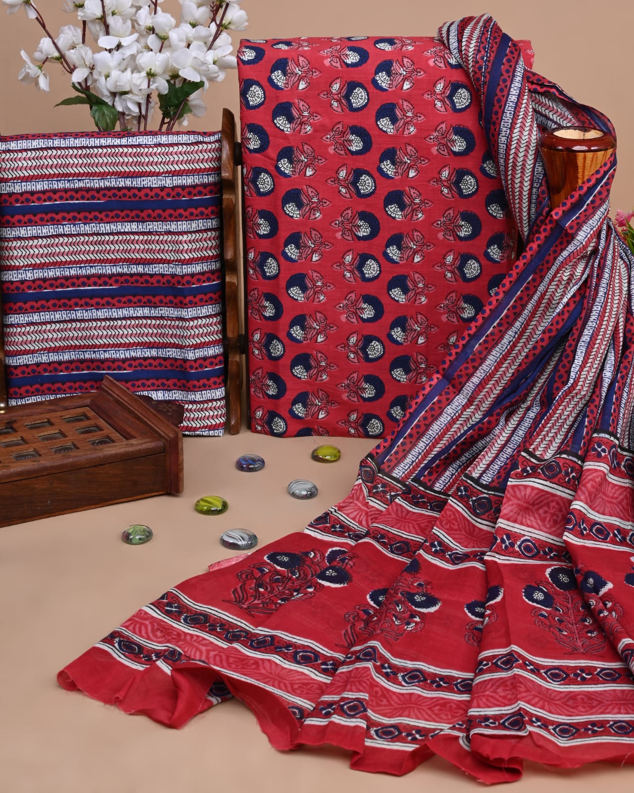 EXCLUSIVE HAND BLOCK PRINT COTTON SUIT SET WITH MULMUL DUPATTA