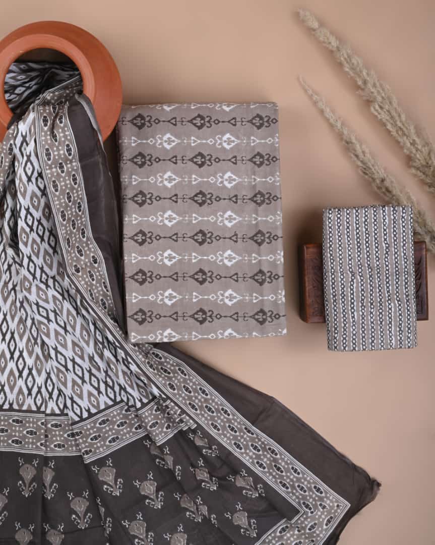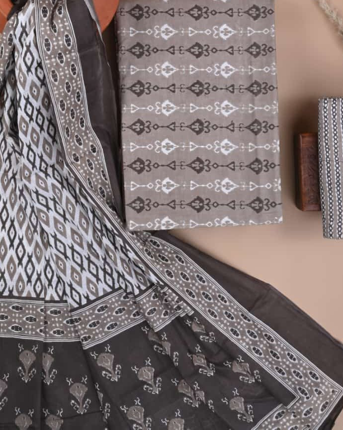 Exclusive Hand block printed cotton suit with cotton dupatta