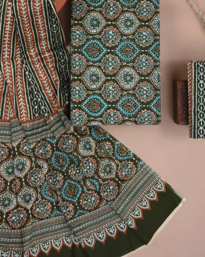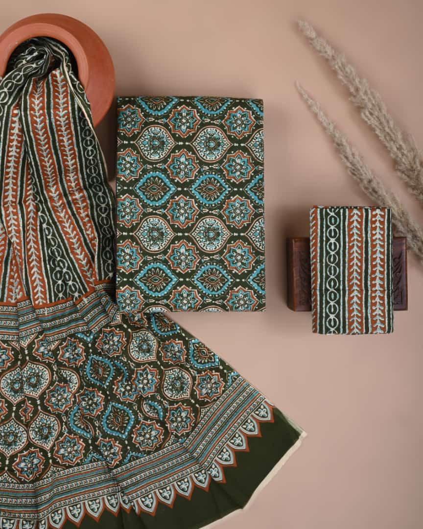 Exclusive Hand block printed cotton suit with cotton dupatta
