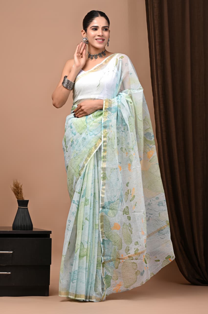 Exclusive hand Block Printed Kota Doria Saree (SWSRKO34)