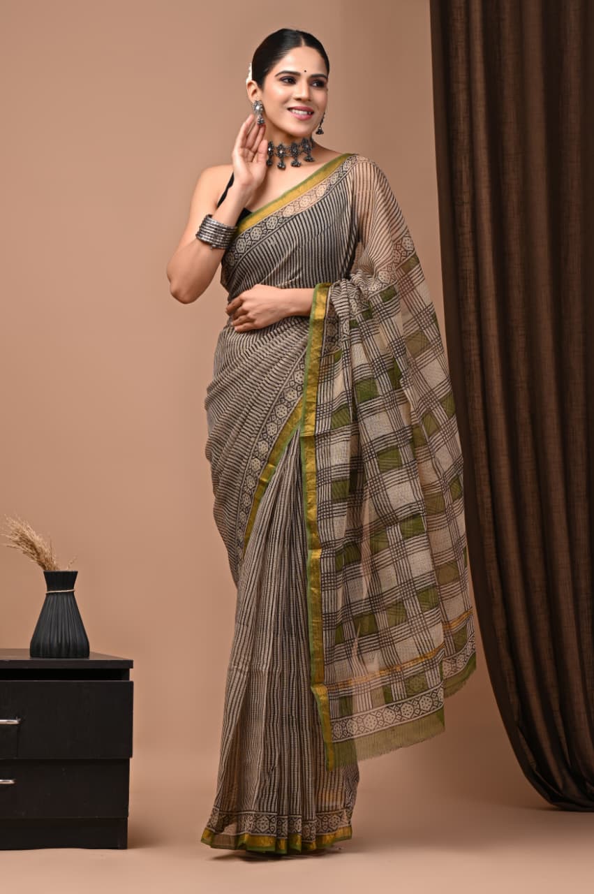 Exclusive hand Block Printed Kota Doria Saree (SWSRKO24)