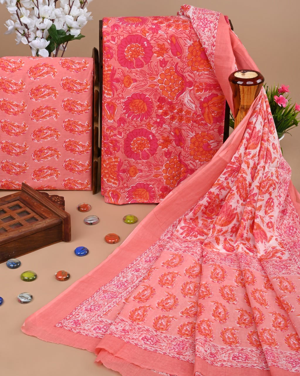 HAND BLOCK PRINT COTTON SUIT SET WITH MULMUL DUPATTA