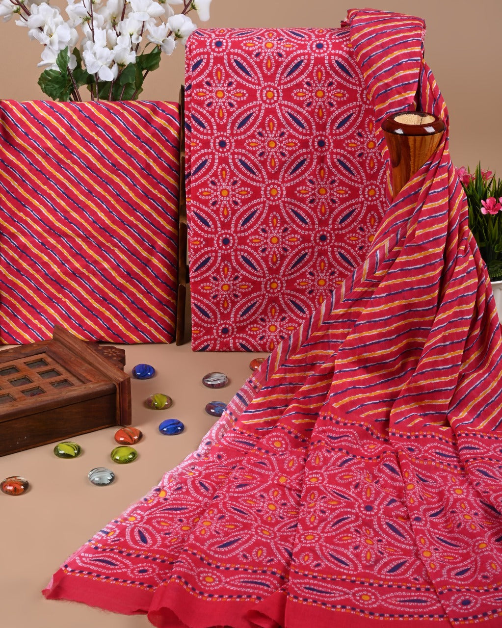 HAND BLOCK PRINT COTTON SUIT SET WITH MULMUL DUPATTA