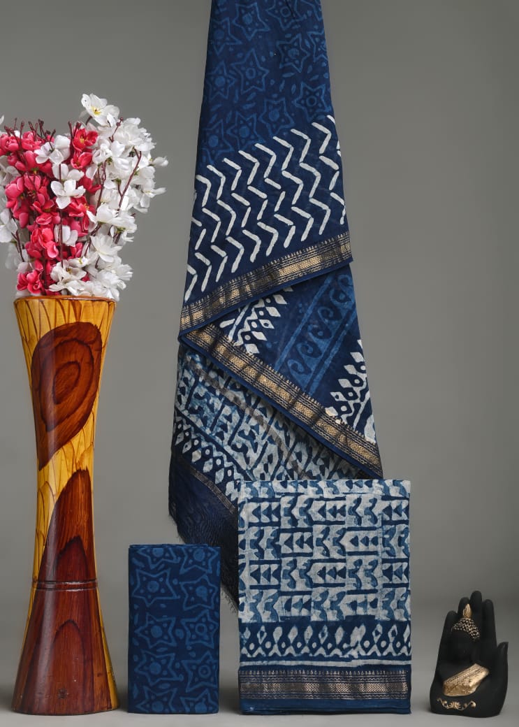 New Exclusive Hand Block Print Maheshwari Silk Suit Set 5