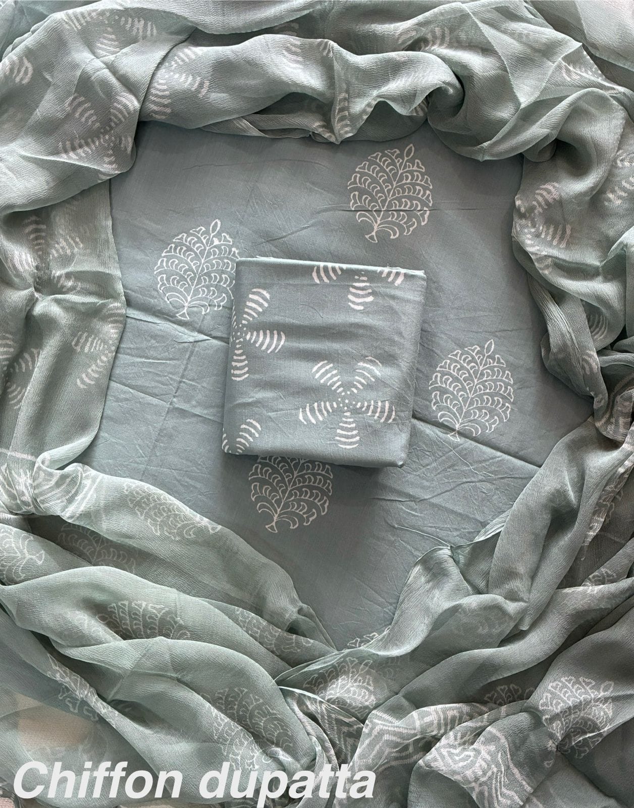 New Premium Hand Block Print Cotton Suit Set with Chiffon Dupatta(WACFCOTMU26)