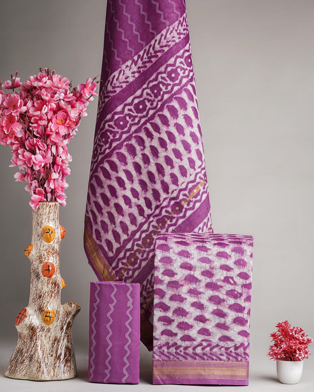 NEW PREMIUM HAND BLOCK PRINT MAHESHWARI SILK SUIT SET