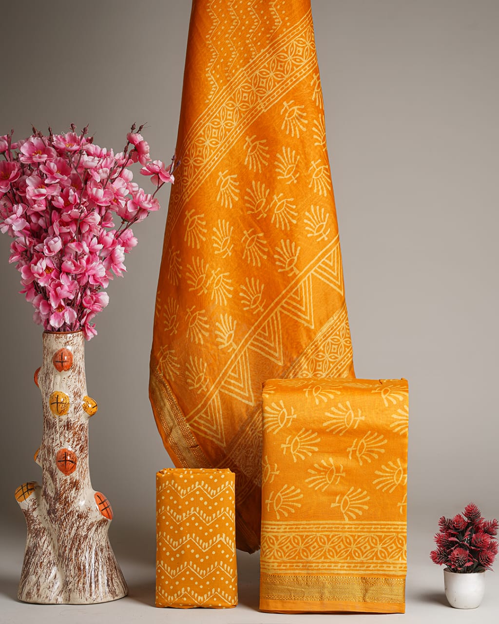 NEW PREMIUM HAND BLOCK PRINT MAHESHWARI SILK SUIT SET
