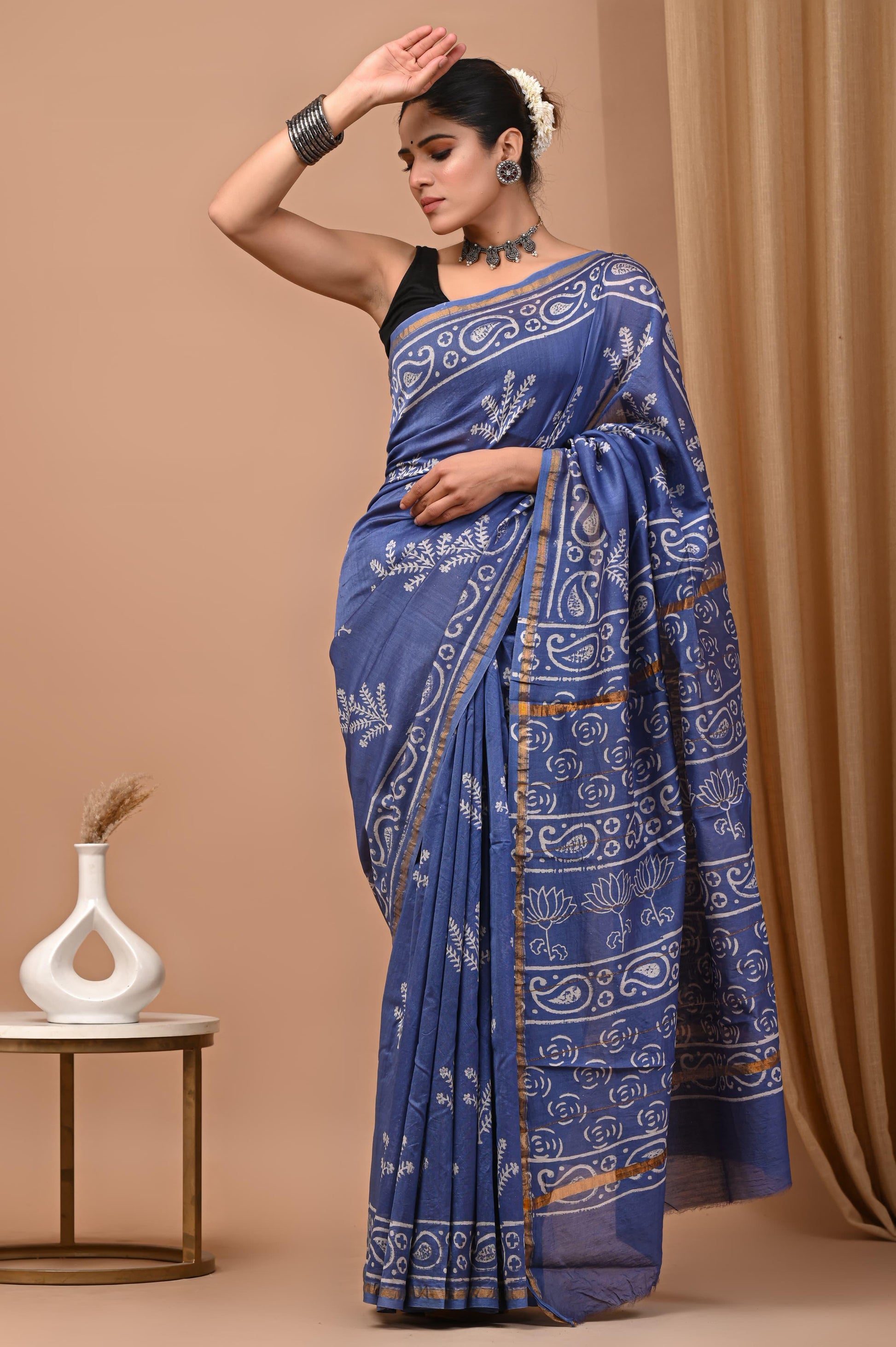 Premium Hand Block Printed Chanderi Silk Saree (SWSRCHACH05)