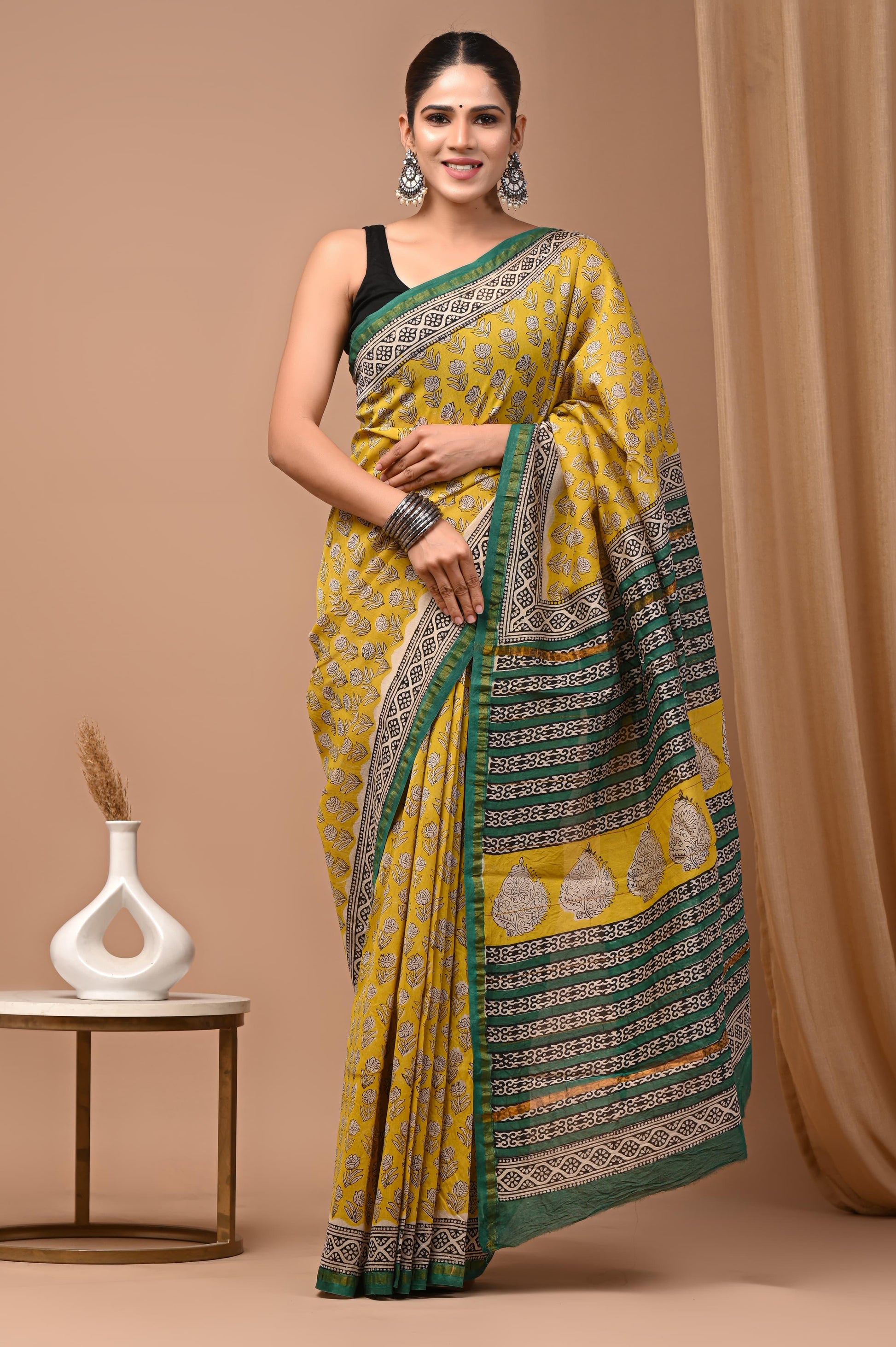 Fabric: Hand Dyed Chanderi and Hand Block Printed Saree.