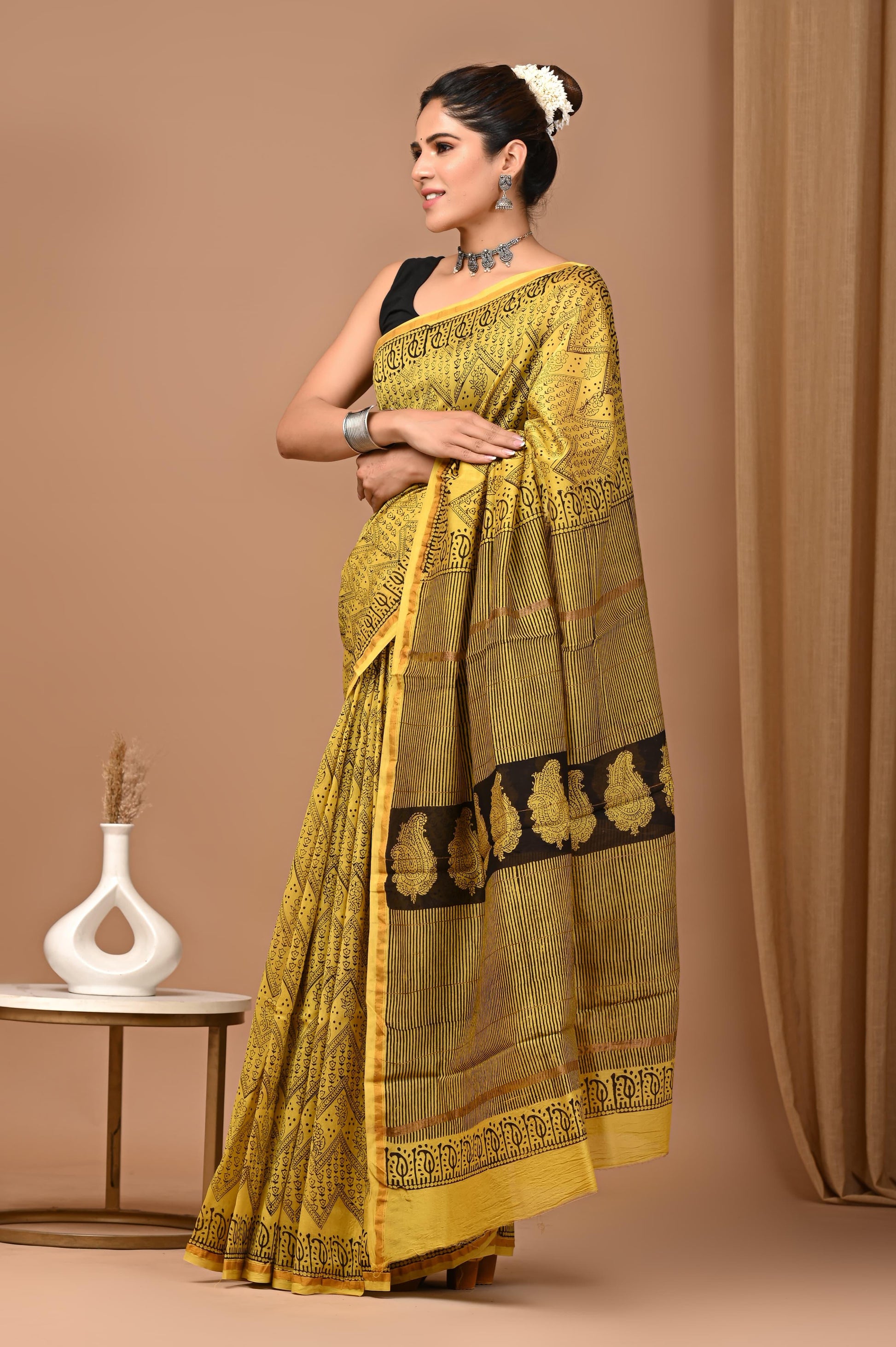 Fabric: Hand Dyed Chanderi and Hand Block Printed Saree.