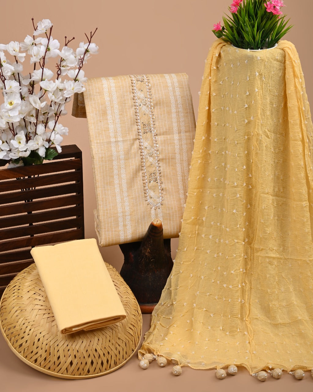 Pair this beautiful cotton fabric with a matching duppata and you're set to take on the day.