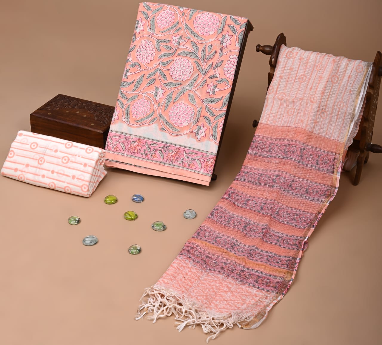 Suits Wala Hand Block Print Cotton Suit Set with Kota Doria Dupatta