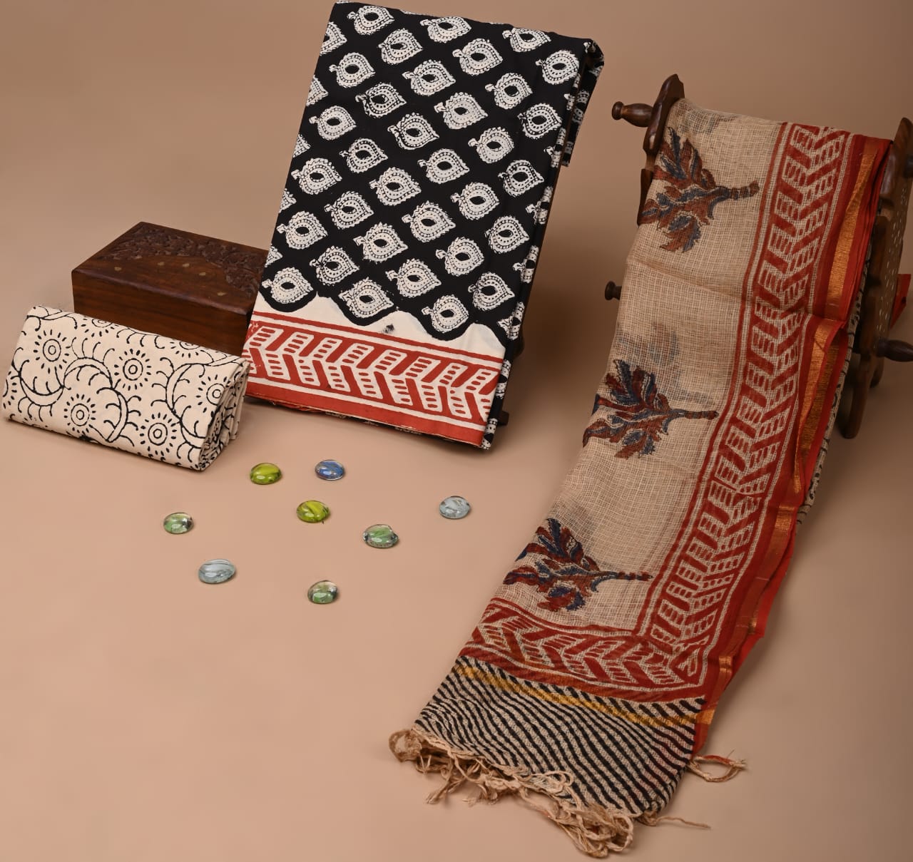 Suits Wala Hand Block Print Cotton Suit Set with Kota Doria Dupatta