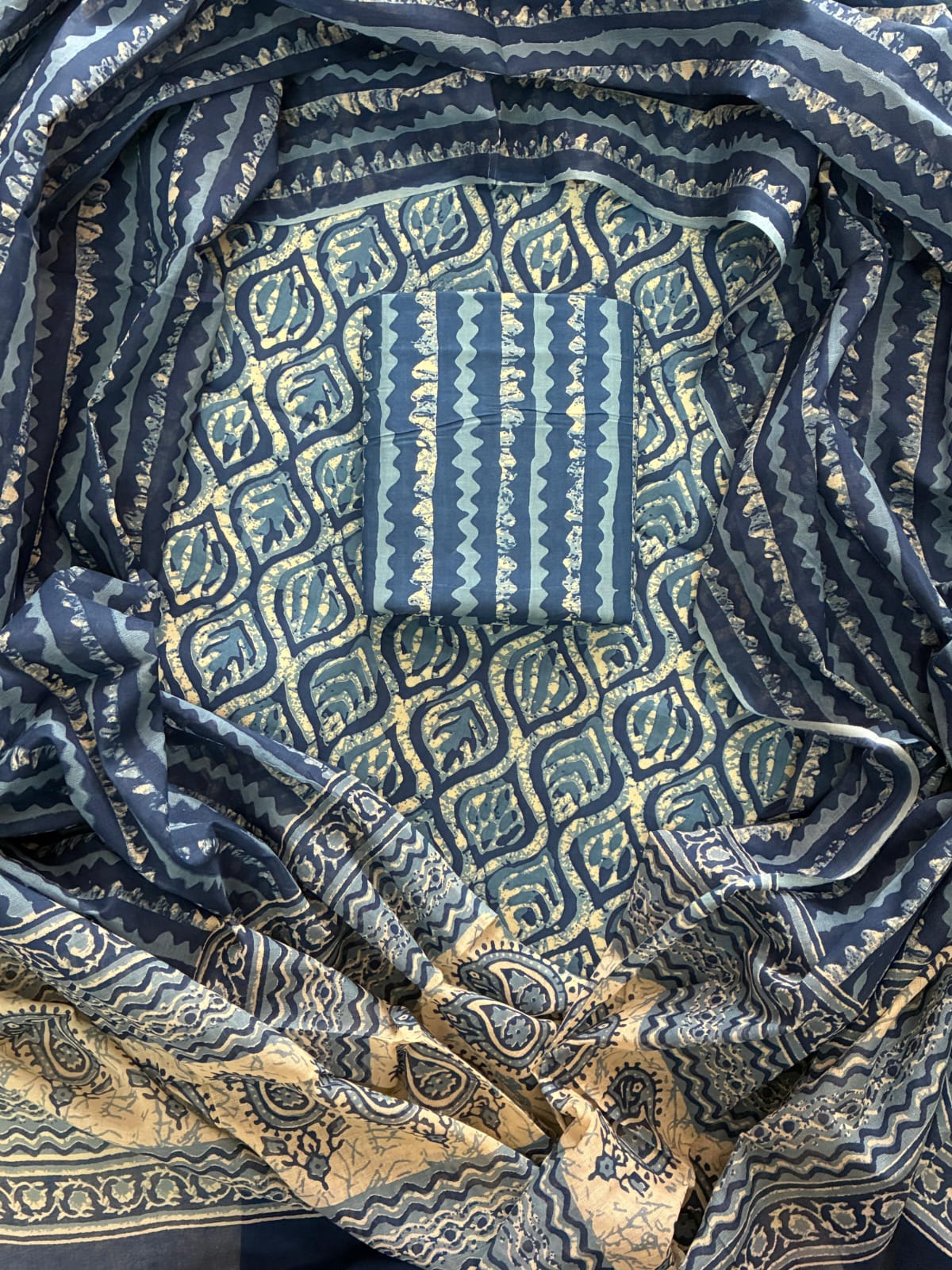 ELEGANT HAND BLOCK PRINT COTTON SUIT SET WITH MULMUL DUPATTA(WACOTMU29)