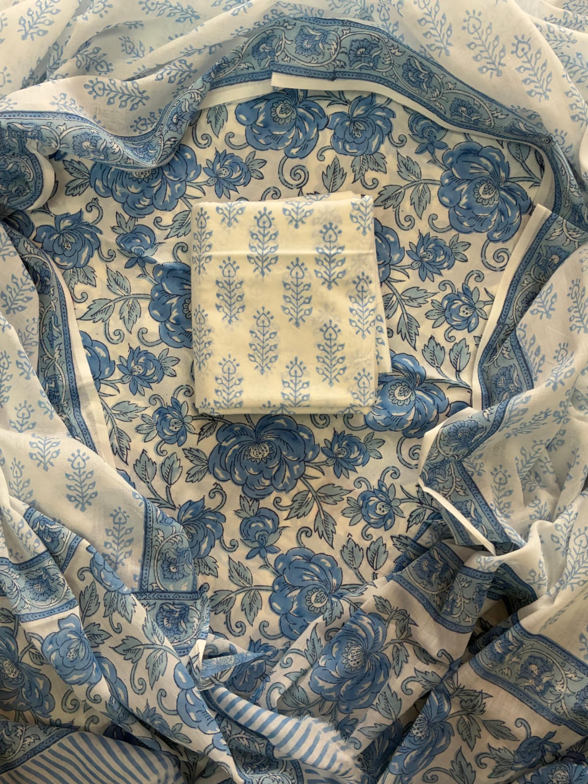 ELEGANT HAND BLOCK PRINT COTTON SUIT SET WITH MULMUL DUPATTA(WACOTMU36)