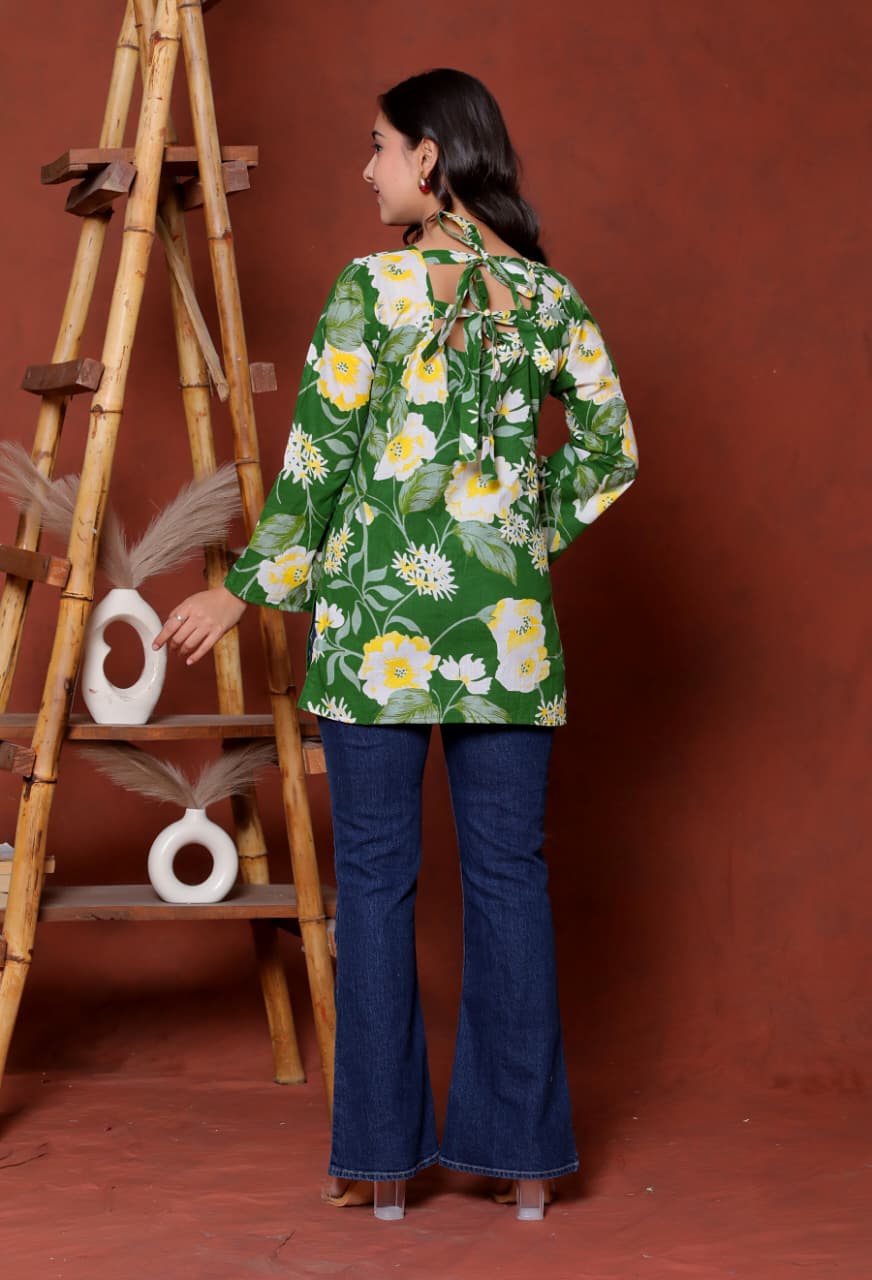 💕💕🌺Product Title: Fuchsia Floral Lace-Up Kurti